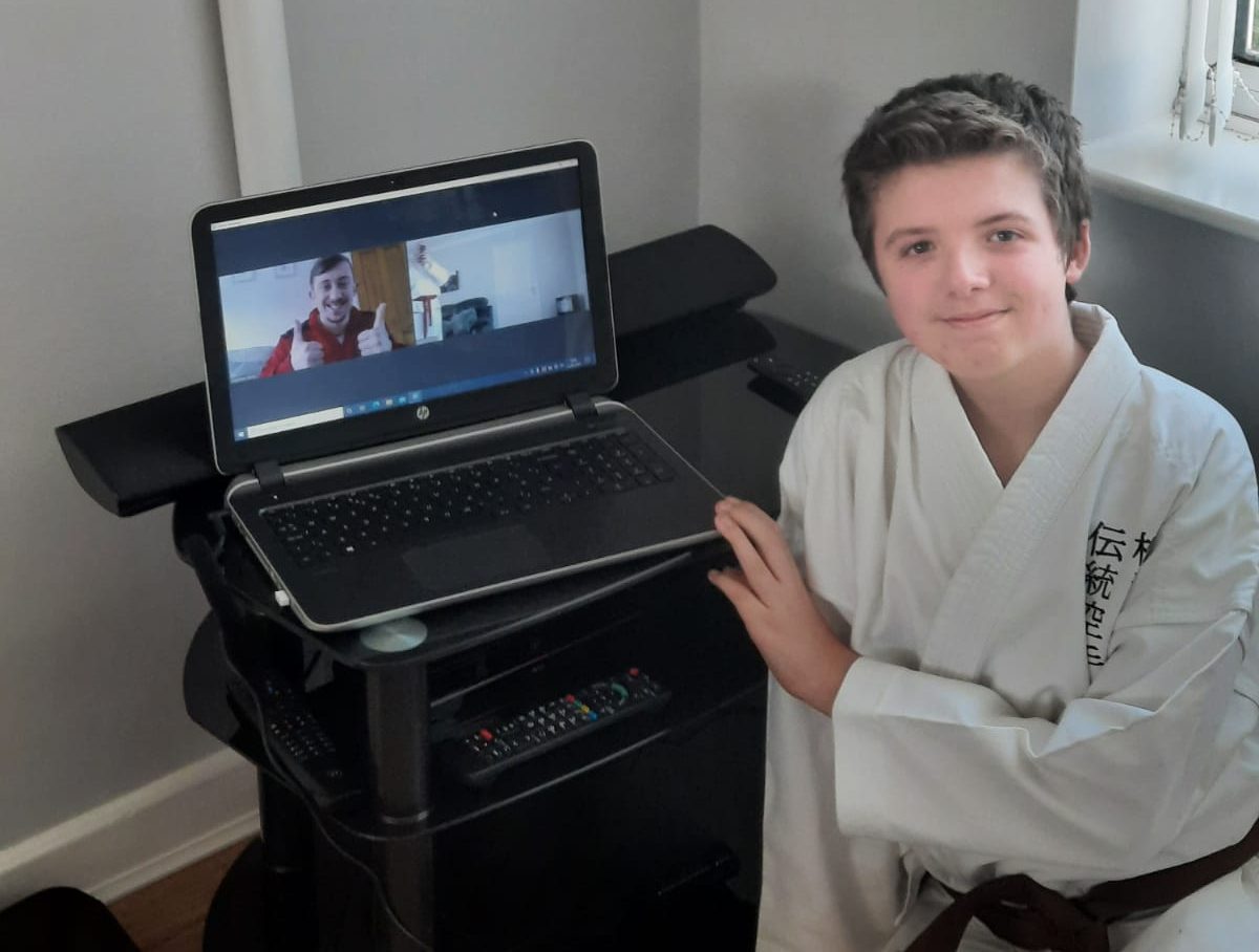 Like the gradings held in June 2020, students would be waiting anxiously at the time of their grading whether it was in their living room, kitchen or even in their garden if that was the only option. Using their laptop, iPad or phone they waited until they had been admitted to a waiting room where the instructor would be waiting for them. Before they knew it, they were being instructed through their grading in their chosen room which was more or less the temporary training dojo for students throughout the online training sessions and grading. With students ranging from Little Ninjas (who by now had set up mats using cushions for mats as part of their breakfalls and rolls sequences), to Juniors and Adults who had to adjust and shuffle around as much as they could to fit in their syllabus without breaking anything or accidently kicking valuable plant pots or photo frames off the shelves. Online gradings is never without its near misses of almost smacking into a door, or stubbing their toe on the bottom of the sofa whilst moving backwards and not being aware of what was behind them. We would like to think it was because students were zoned in and focussing on their grading rather than forgetting that actually there isn’t as much room say compared to being in a full sized hall where other students would be grading. Occasionally there would be a delay because a loving pet would decide that they didn’t like being shut out and away from their owner and would take it upon themselves to interrupt the grading. All the students would admit that the pressure and nerves are still the same despite that they are still at home. One minute they are watching TV and enjoying a coffee, the next they are looking at their instructor who would be deciding whether they have passed their grading.